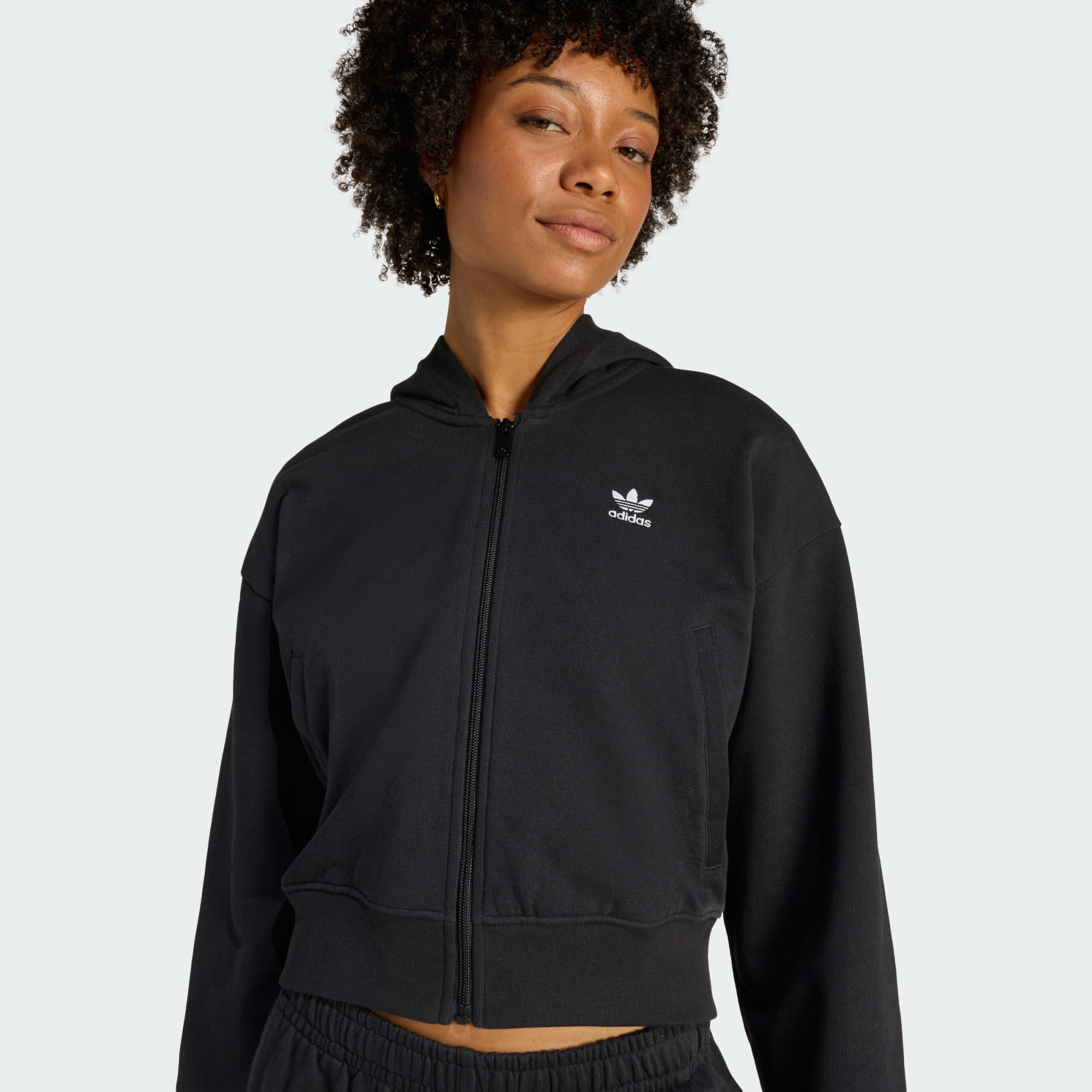 BUZO CORTO CON CAPUCHA ESSENTIALS DE FELPA FRANCESA CON CIERRE CORTO