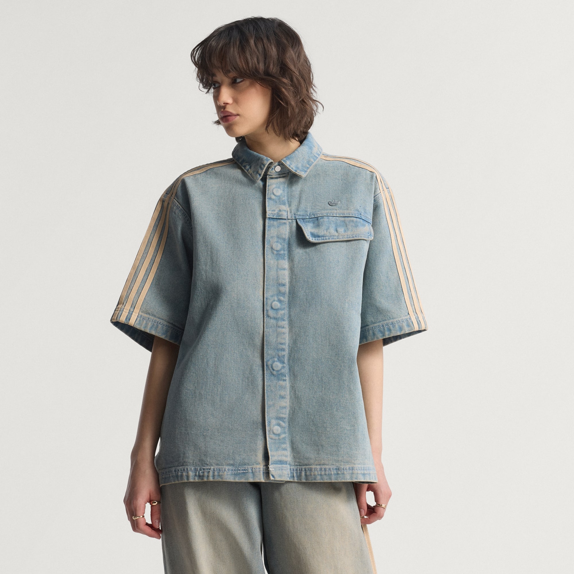 Esta camisa de manga corta de tejido denim de adidas está confeccionada en 100 % algodón para que estés cómodo todo el día. El diseño se inspira en la ropa de trabajo, con una estética refinada y minimalista. Combínala con tus jeans favoritos o úsala con una falda para conseguir un look versátil que te lleve del día a la noche.