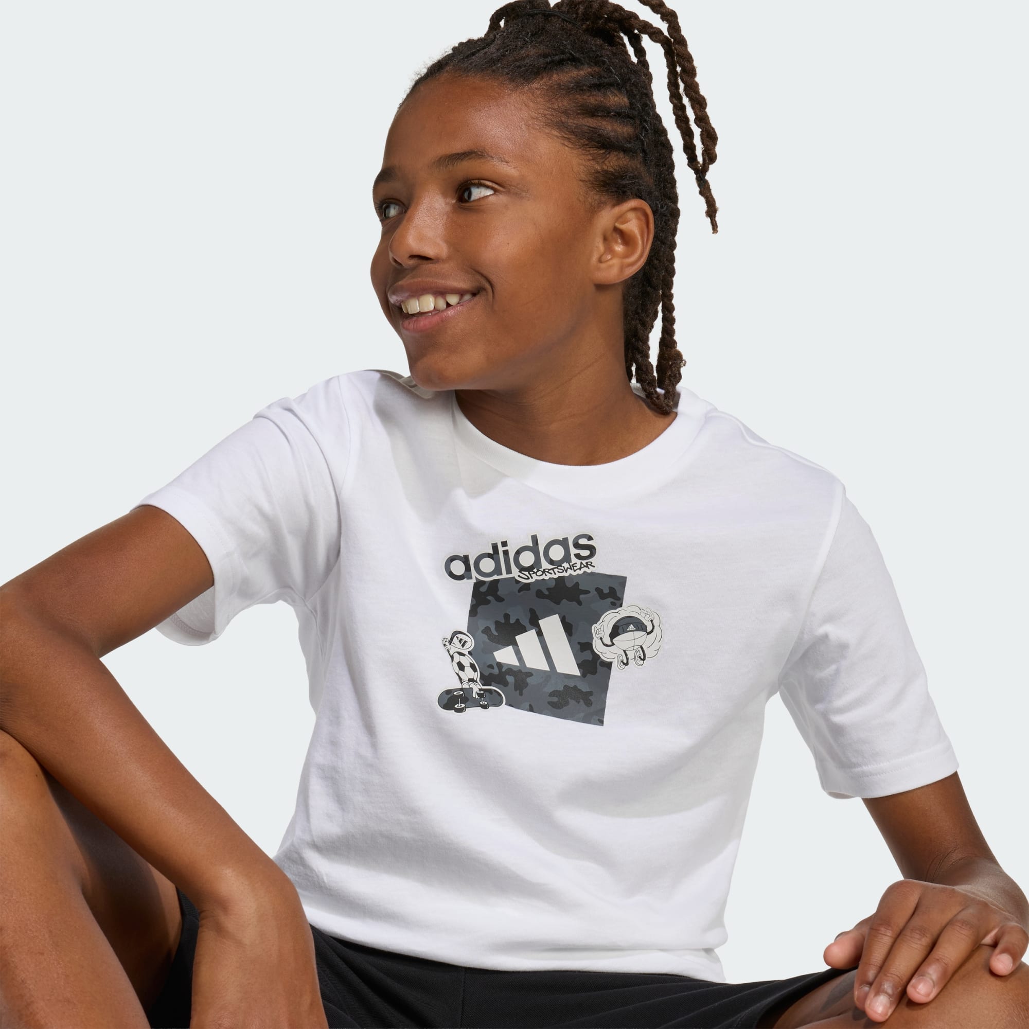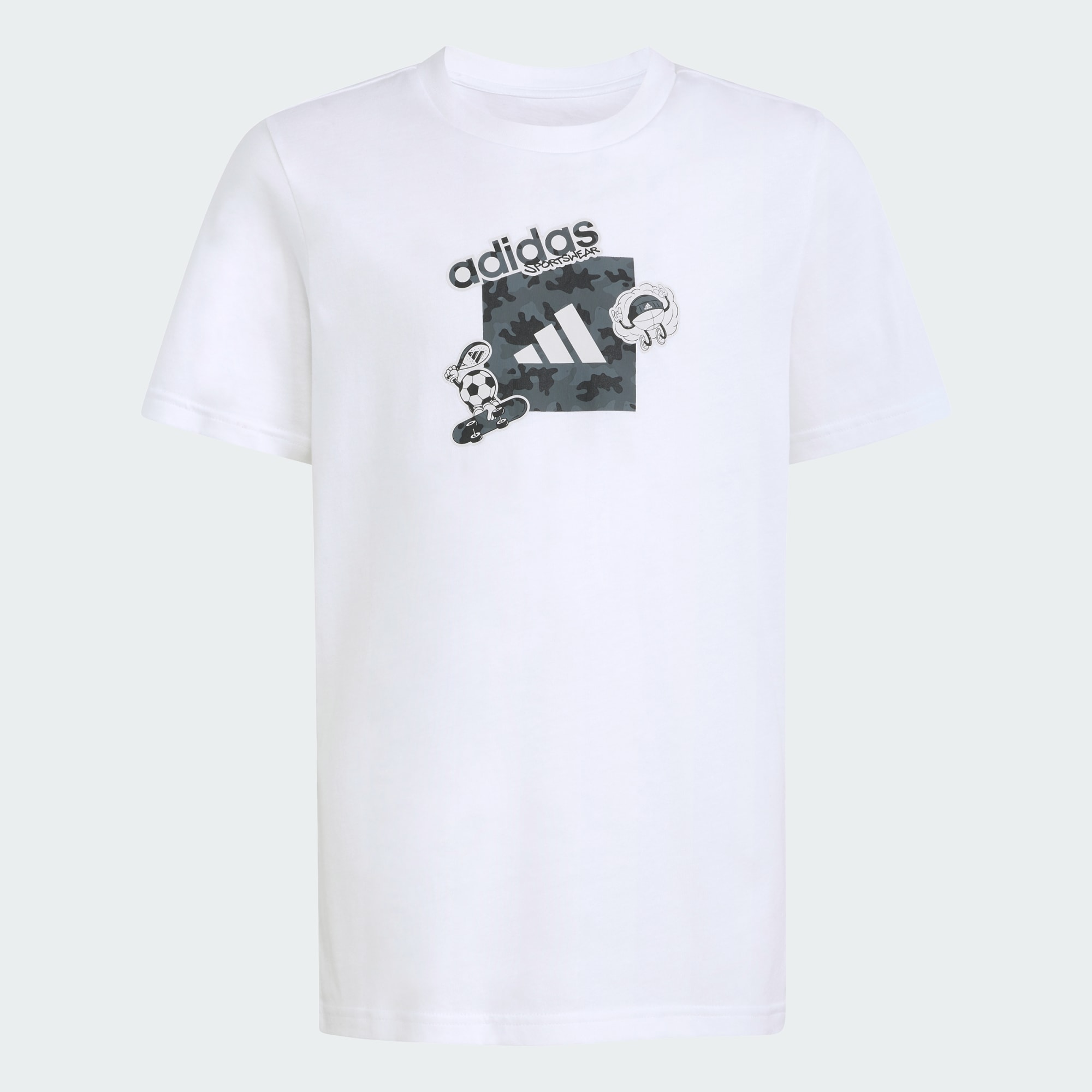 Diseñada para seguir el ritmo de los niños en movimiento, la CAMISETA GRAPHIC CAMO ofrece un distintivo estilo de camuflaje y un fresco toque deportivo. Para aventurarse a explorar, es un complemento divertido para el día a día. Confeccionada en suave tejido de punto jersey, esta camiseta ofrece un tacto suave sobre la piel y una comodidad ligera para el día a día. El gráfico de camuflaje le añade un toque gráfico, que la convierten en el favorito de los niños a los que les gusta destacar. Desde hacer deporte en el parque hasta un día en clase, su hijo puede canalizar su espíritu aventurero con una camiseta que se adapte a su ritmo y energía. Esta camiseta encarna el compromiso de adidas de crear prendas de vestir que apoyen estilos de vida activos.