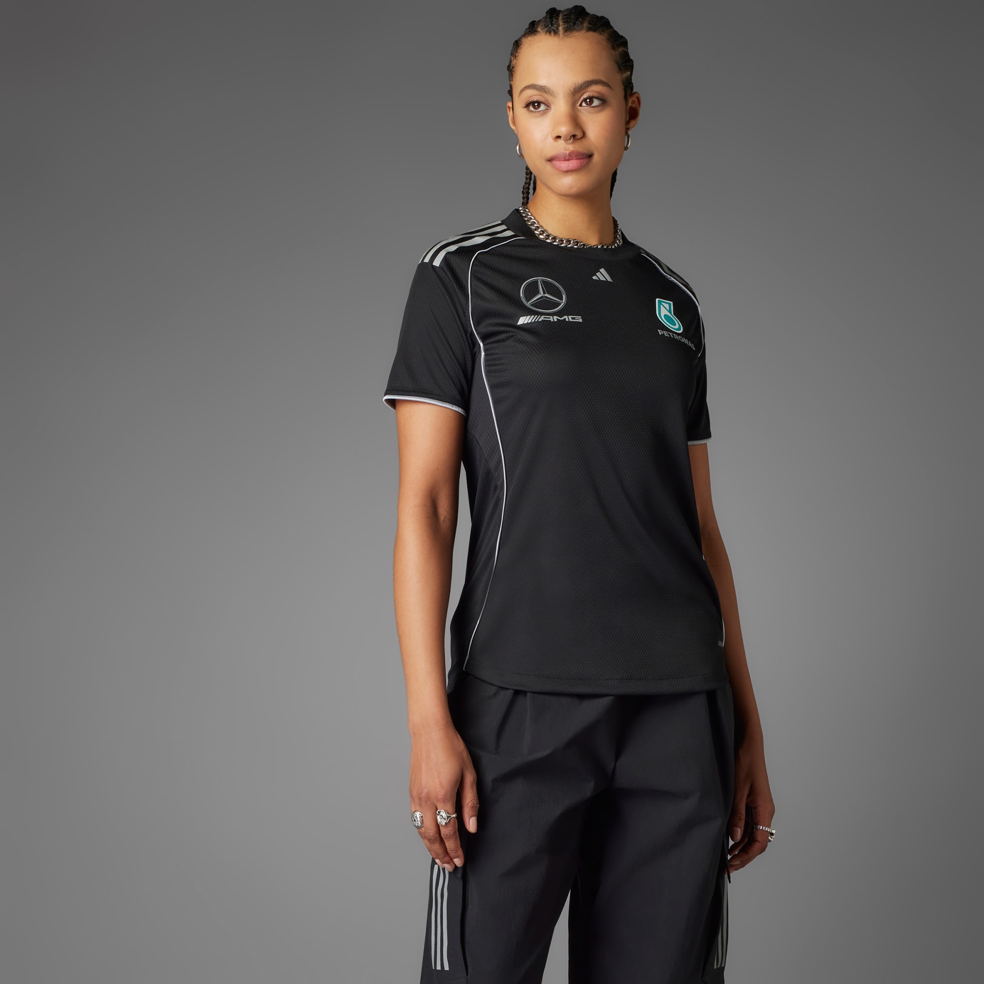 Vístete como parte del equipo que está detrás de Mercedes - AMG PETRONAS F1 Team. Esta camiseta de mecánico de adidas Motorsports evoca el look estilizado de la escudería con detalles auténticos que evocan el papel del mecánico en llevar el rendimiento a nuevas alturas. Los logos del equipo y del patrocinador aportan un toque auténtico. Este producto está hecho con materiales 100 % reciclados. Utilizando materiales reciclados disminuimos los residuos, nuestra dependencia de los recursos finitos y la huella que generan los productos que fabricamos.