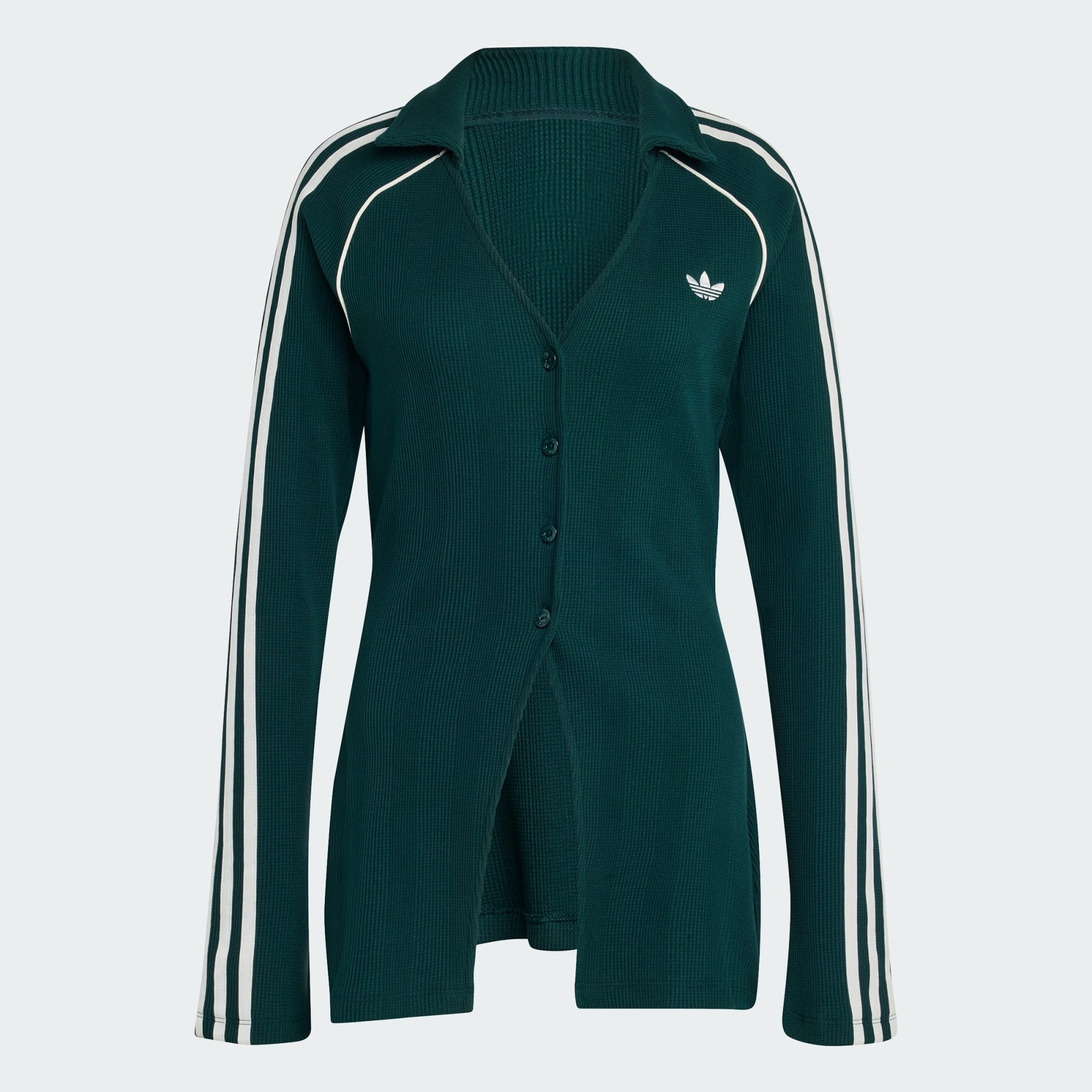 La camiseta de tejido waffle con botones adidas Originals es una gran elección si quieres crear un look que combine estilo relajado y comodidad acogedora. Con su tejido de punto waffle de primera calidad y el logo del Trifolio bordado, su diseño se ajusta al cuerpo, creando una silueta estilizada que se mueve contigo. El cierre de cuatro botones en el centro de la parte frontal añade un toque de elegancia, mientras que los ribetes de las mangas acampanadas de corte raglán con cinta de las 3 Rayas aportan un toque deportivo y un atractivo llamativo. Si buscas una camiseta suave que se sienta bien en contacto con la piel, esta camiseta de algodón de tejido waffle se ajusta a la perfección, perfecta para salidas informales o para usar a capas debajo de una chaqueta. El corte ajustado crea un look favorecedor, ceñido y con forma que es tanto moderno como atemporal. Tanto si sales a pasar el día con amigos como si te relajas en casa, la camiseta de tejido waffle con botones Originals es una prenda esencial versátil, cómoda y elegante que emana estilo relajado.