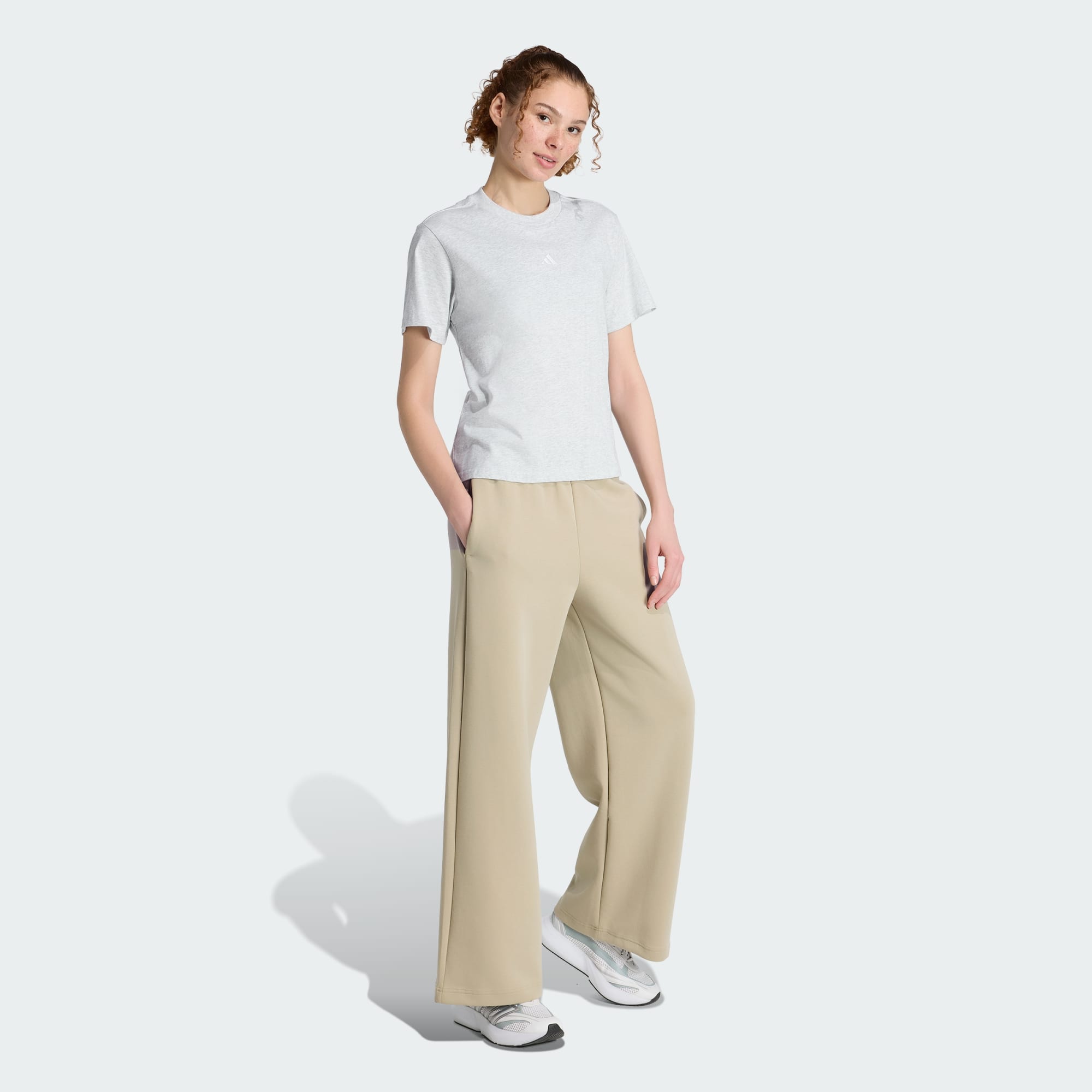 Esta camiseta adidas hace que la comodidad luzca tan bien como se siente. Confeccionada en algodón suave, es una prenda para uso diario que combina a la perfección con todo, desde pantalones deportivos hasta jeans y shorts de lino. Un pequeño logo de las 3 Barras en el pecho le pone el toque final a este look deportivo.