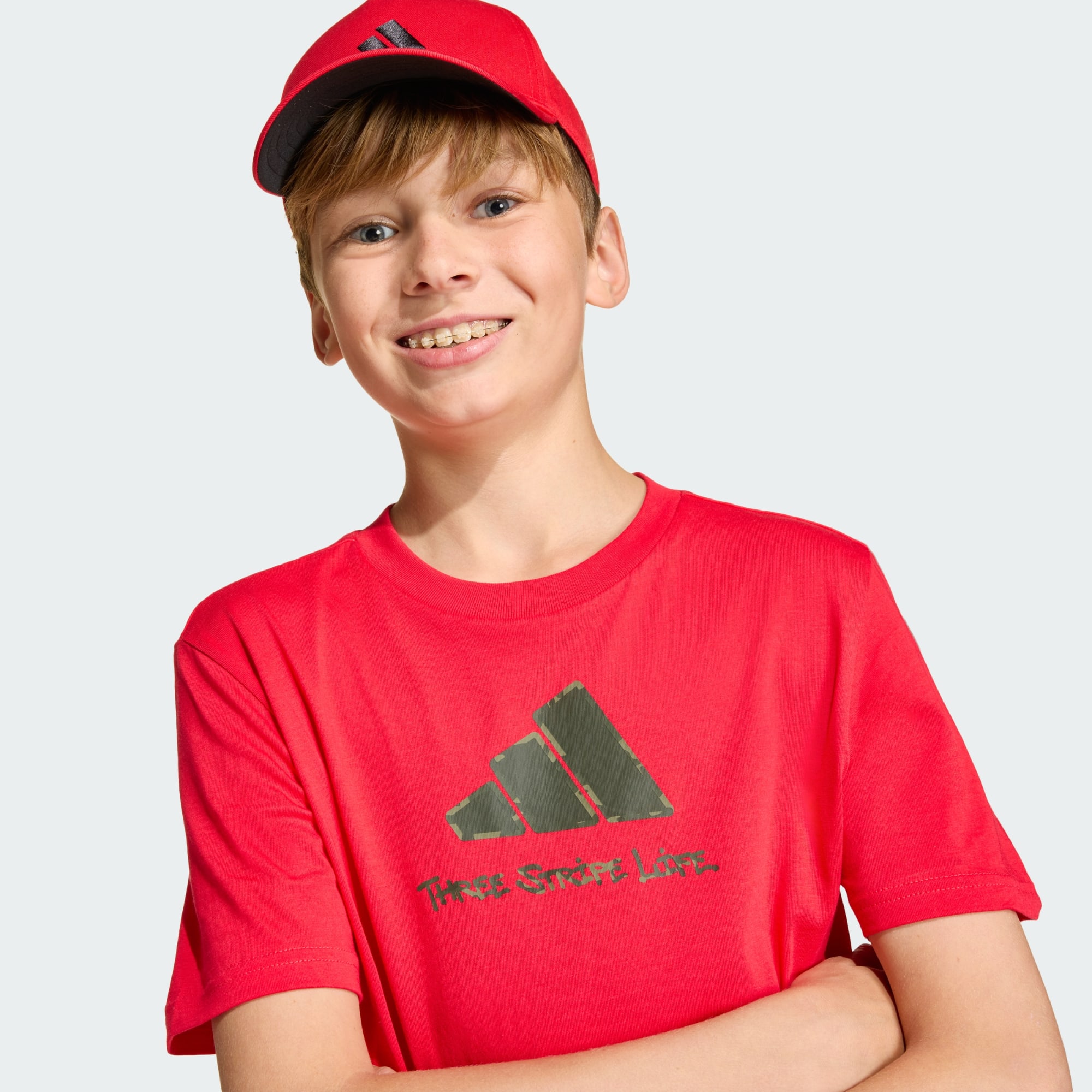Hecha para niños a los que les encanta expresarse, la camiseta Graphic con camuflaje para niños combina comodidad con un toque de diversión. Tanto si se trata de planes extraescolares como de una aventura de fin de semana, te seguirá el ritmo. Confeccionada en suave tejido de punto camiseta algodón, ofrece un tacto suave contra la piel y una sensación realmente cómoda. El corte clásico permite un fácil movimiento. Con su vibrante gráfico de camuflaje, esta camiseta añade un toque de emoción a cualquiera de sus looks. Fomenta la creatividad y la individualidad ya que se pueden mezclar y combinar. adidas se dedica a potenciar a la próxima generación y esta camiseta no es una excepción. Deja que tu hijo se exprese y brille con confianza.