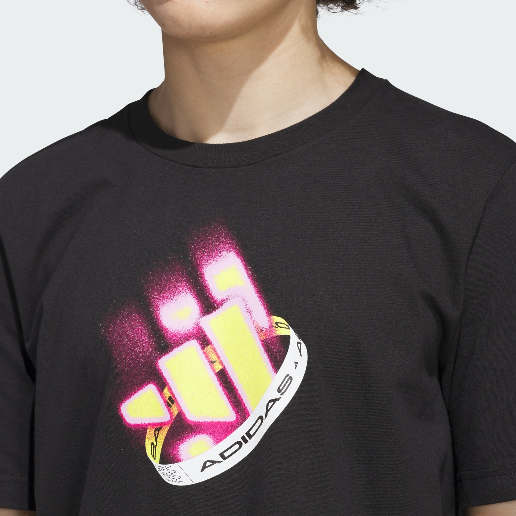 Esta camiseta estampada adidas le imprime un look llamativo a tu estilo diario. El tejido jersey de algodón te mantiene cómodo sin importar a donde te lleve tu día. Su diseño de color neón deja que tu espíritu libre brille.