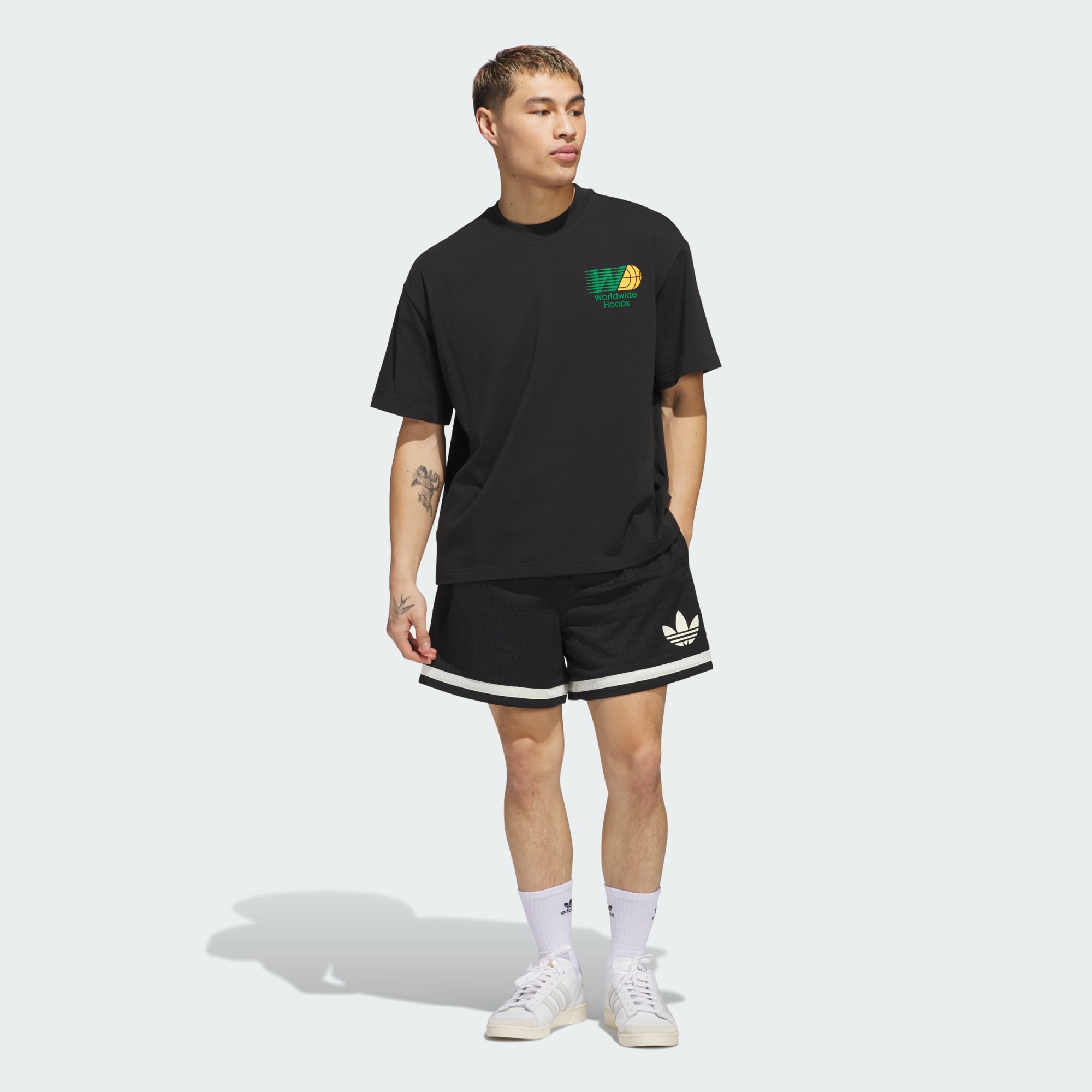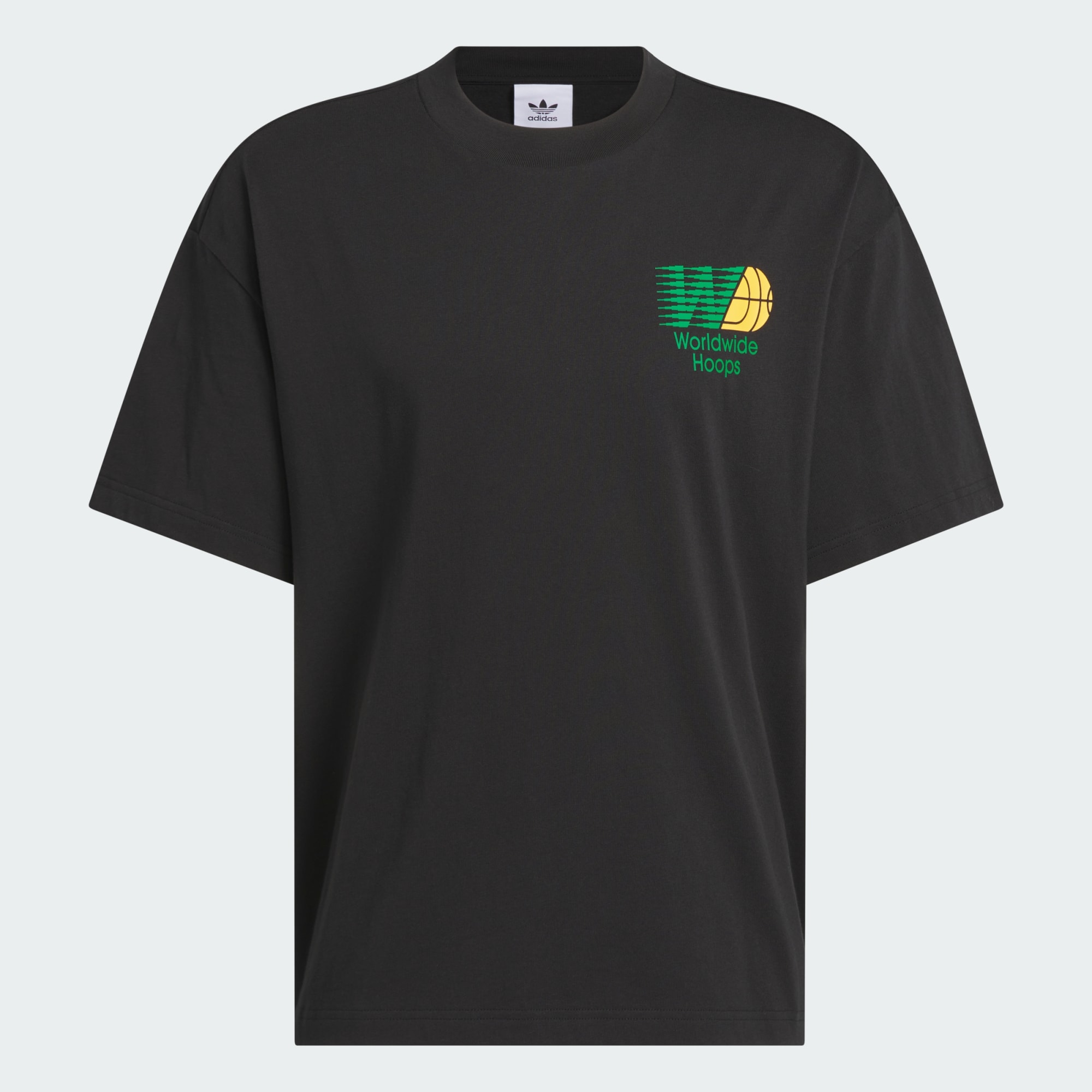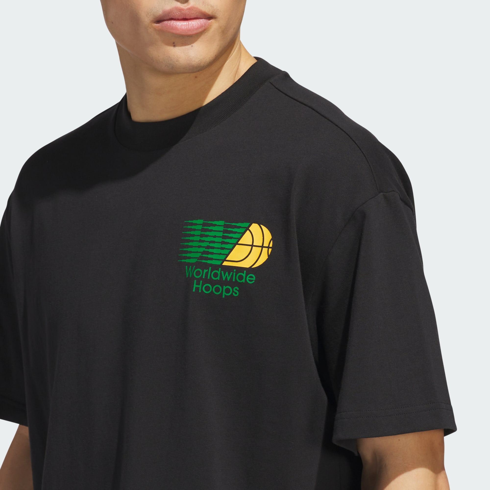 Celebra el básquet mundial con esta camiseta de ajuste holgado de adidas. Esta camiseta estampada está confeccionada con un tejido de punto jersey suave y transpirable que te brinda comodidad en todo momento del día. Los estampados en la parte delantera y trasera muestran tu amor por la cancha de básquet.