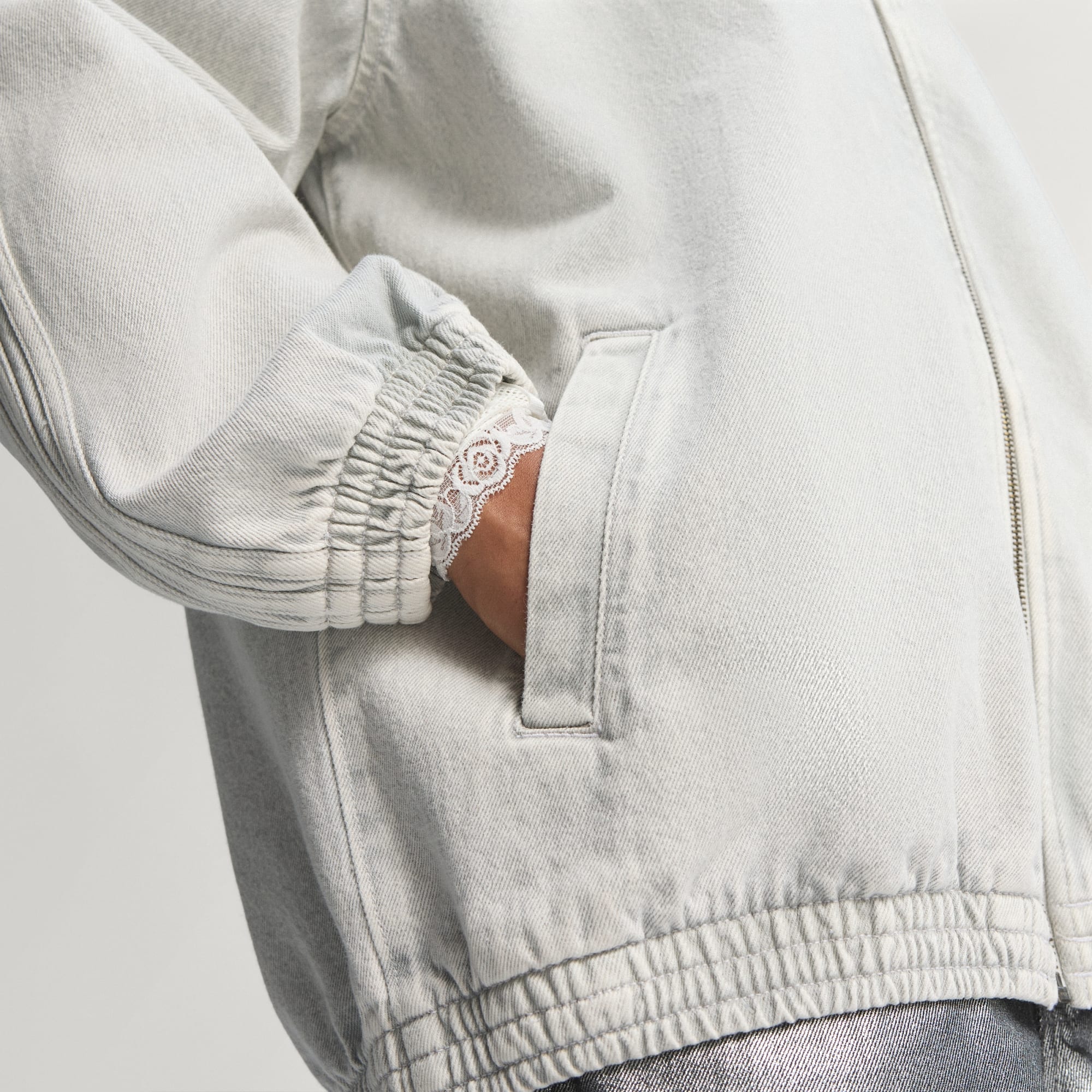 Chaqueta deportiva en tejido denim con cierre frontal para una mezcla ideal de forma y función.
