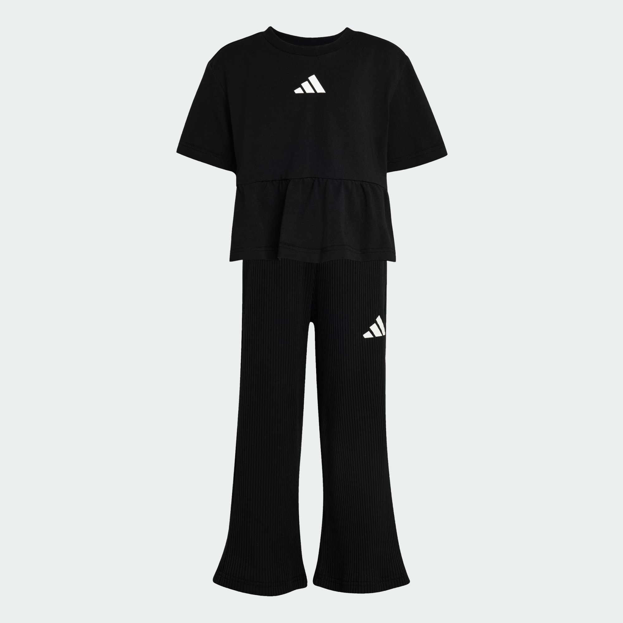 El estilizado CONJUNTO DE BUZO SEASONALS CON VOLANTES aportará un toque de estilo y mucha comodidad a su vestuario para que puedan brillar, hagan lo que hagan. Este conjunto incluye una camiseta de corte holgado de manga corta con un lindo dobladillo con volantes. Los amplios pantalones deportivos de pierna ancha tienen cintura elástica y cordones ajustables para un ajuste personalizado. El logo de las 3 Barras en ambas piezas añade un toque deportivo adidas, mientras que los bolsillos en las costuras laterales aportan mayor conveniencia. El suave tejido de punto jersey proporciona una sensación suave sobre su piel. Tanto si lo usan para jugar como para salidas informales, este conjunto de ropa adidas les servirá para cualquier aventura. Es una bonita combinación.