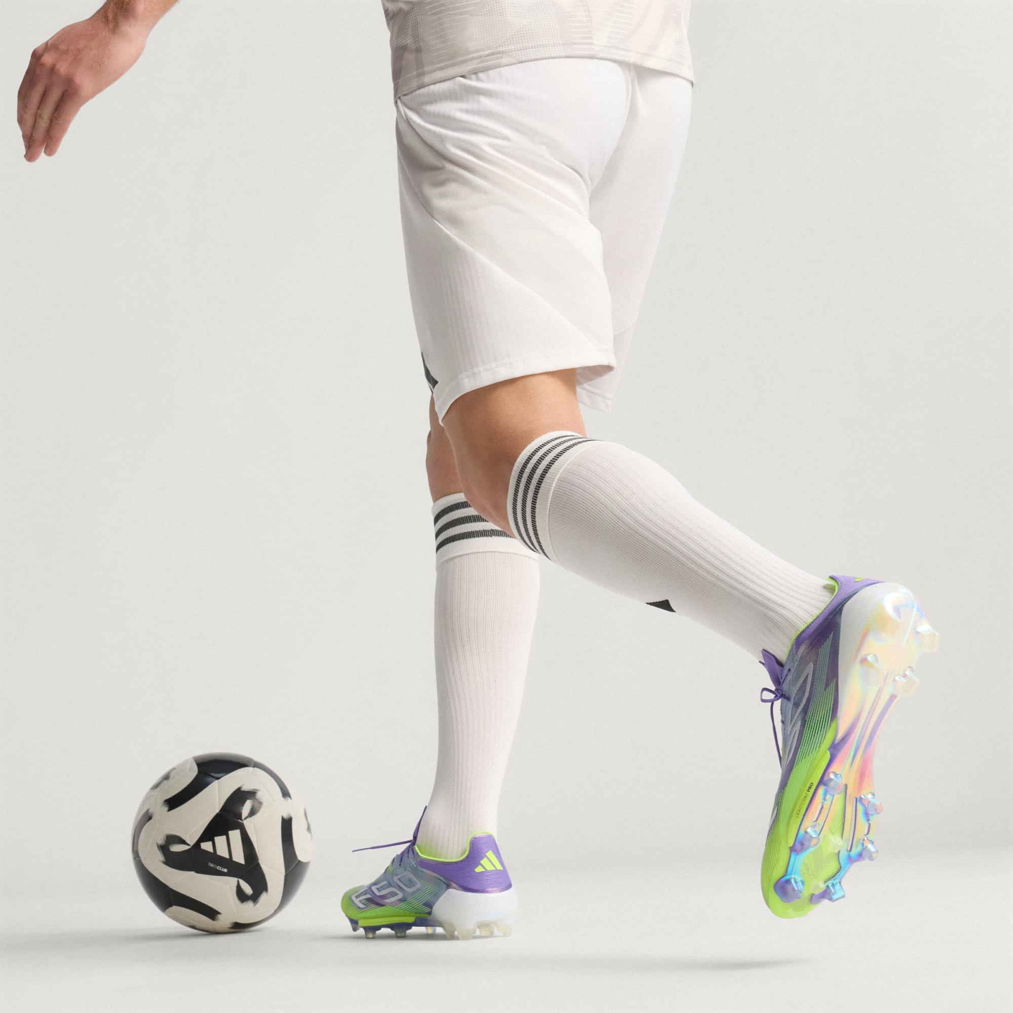 Encuentra tu rapidez para expresarte de verdad en el campo. Siente la adrenalina con los guayos adidas F50, diseñados para la velocidad. El pináculo de la colección, estos guayos permiten velocidades aún mayores gracias a una suela Sprintframe 360+ que incorpora una doble placa en el empeine para una aceleración inmediata. Dentro del exterior Fibertouch, un inserto Lightstrike Pro aporta comodidad. En el exterior, el texturizado Sprintweb 3D hace que el regate a alta velocidad sea pan comido.