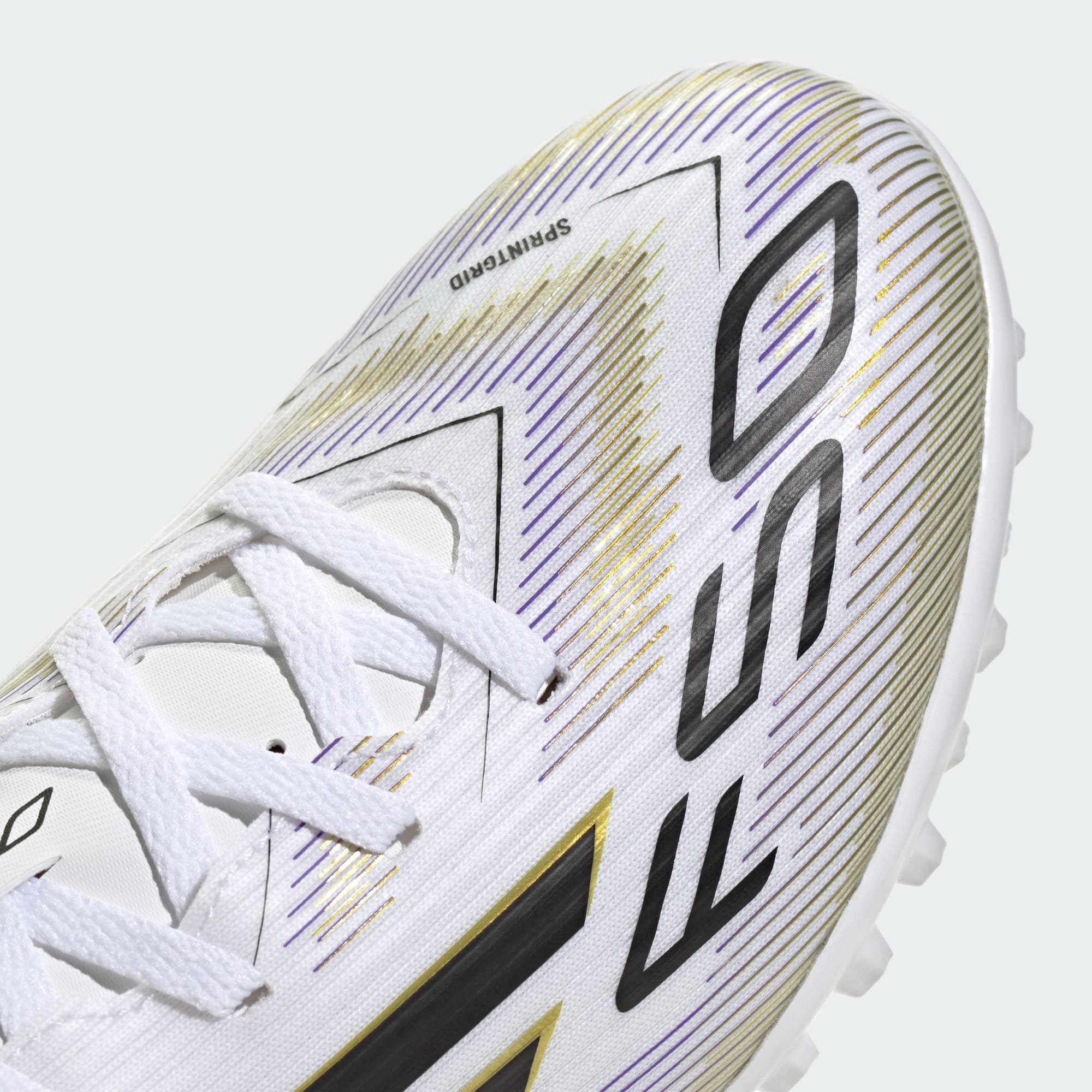 Encuentra tu rapidez para expresarte de verdad en el campo. Siente la adrenalina con los guayos adidas F50, diseñados para la velocidad. Estos guayos de fútbol Club te mantienen cómodo mientras estás en movimiento con un exterior Fiberskin de gran sujeción y una lengüeta perforada. Dales la vuelta y encontrarás una suela exterior de caucho con taches que brinda soporte para un juego rápido en césped artificial.