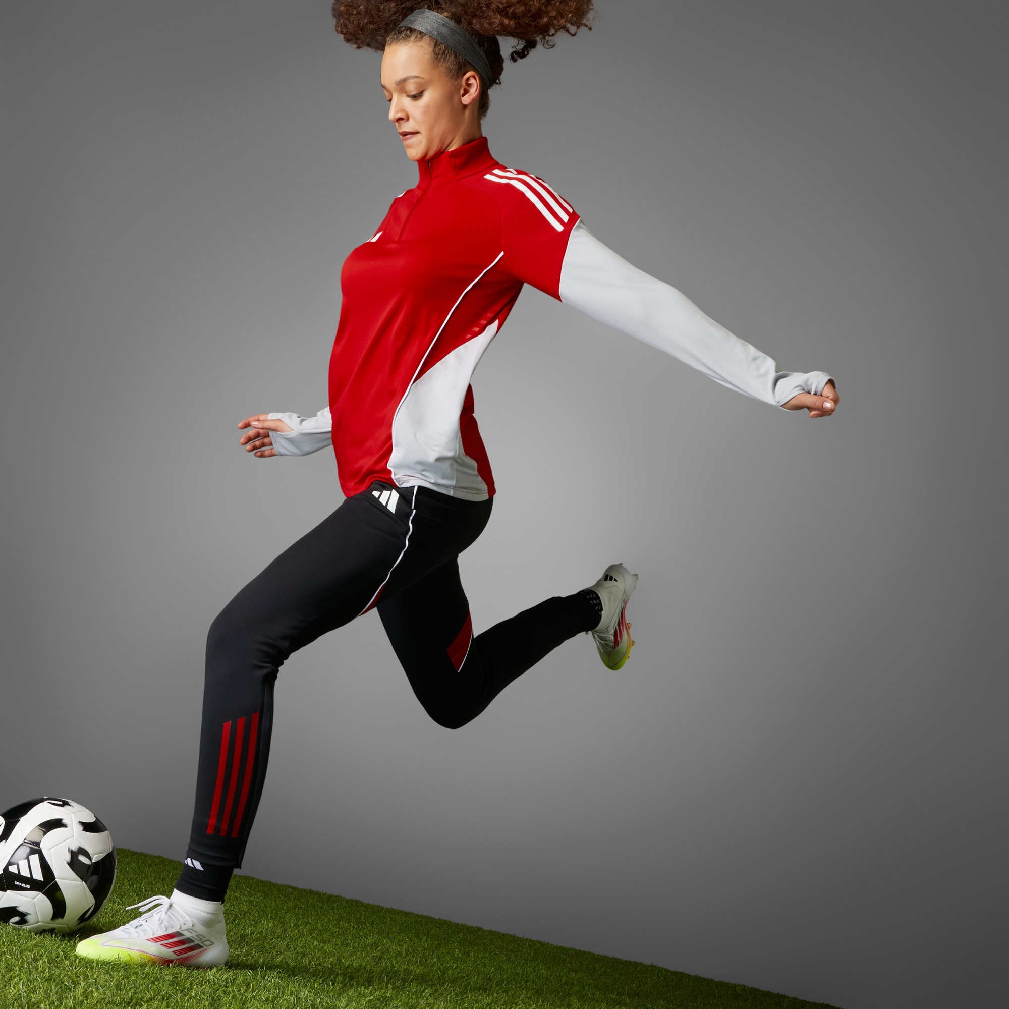 Esfuérzate al máximo con este calzado ligero adidas F50, creado para alcanzar velocidades impactantes. Estos guayos de fútbol Elite lucen un diseño de corte medio específico para mujer, con un panel en tejido adidas PRIMEKNIT alrededor del tobillo y una plantilla gruesa que te proporcionan mayor sujeción. El exterior Fibertouch delgado presenta una textura Sprintweb 3D que mantiene el balón pegado al pie mientras vuelas sobre el terreno de juego. La suela Sprintframe 360 te ofrece una aceleración explosiva en canchas de terreno firme.