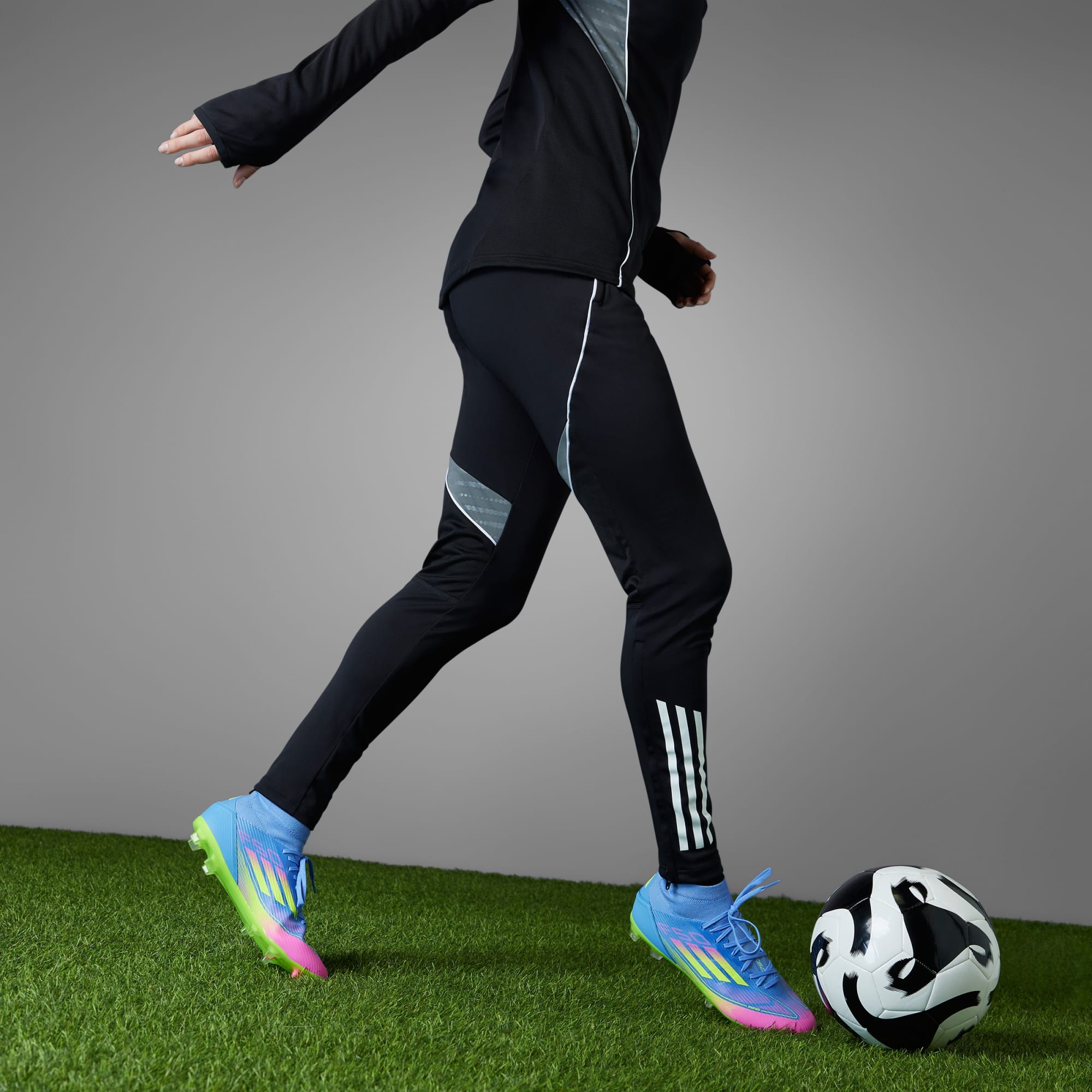 Esfuérzate al máximo con este calzado ligero adidas F50, creado para alcanzar velocidades impactantes. Estos guayos de fútbol League lucen un diseño de corte medio específico para mujer con un panel ajustado alrededor del tobillo y una plantilla gruesa que te proporcionan mayor sujeción. El exterior Fiberskin con un llamativo estampado Sprintgrid se combina con una suela versátil que te aporta agilidad en canchas de terreno firme y pasto sintético. Este producto contiene al menos un 20 % de material reciclado. Utilizando materiales reciclados disminuimos los residuos, nuestra dependencia de los recursos finitos y la huella que generan los productos que fabricamos.