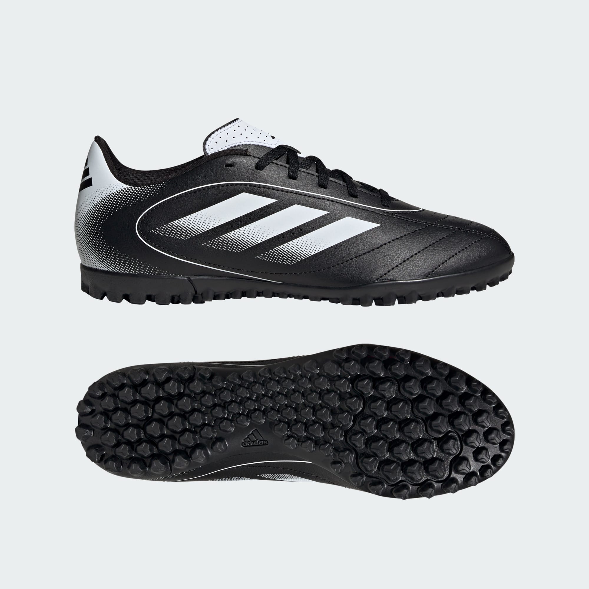 Ponte estos guayos de fútbol adidas Goletto IX y prepárate para brillar. Su exterior sintético suave incorpora acolchado y perforaciones en los lugares adecuados para mantenerte cómodo en todo momento. La suela de caucho con taches te permite moverte con rapidez en canchas de césped artificial.
