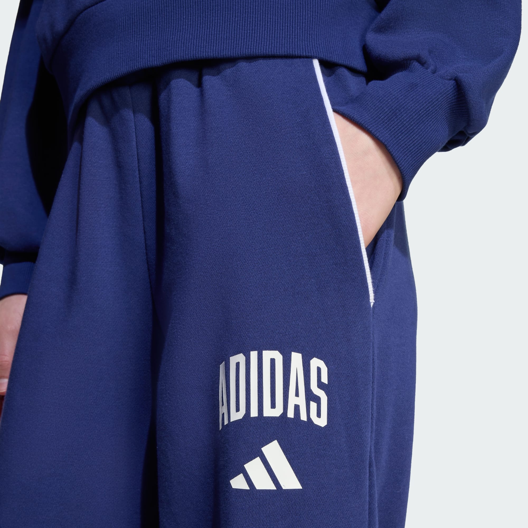 Confeccionado en suave felpa francesa, este pantalón adidas para niños te envuelve en comodidad. Su corte de pierna ancha y su diseño deportivo y retro celebran el legado deportivo de nuestra marca. Perfectas para descansar o cuando te desplazas, combinan bien con un buzo para un ambiente relajado.