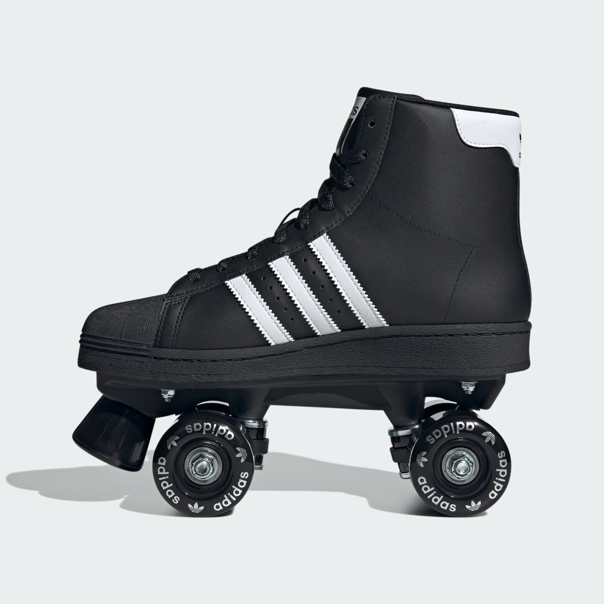 Deslízate sobre la pista con estos patines de cuatro ruedas de adidas. La icónica puntera de caucho y las 3 Rayas con borde dentado rinden homenaje a los clásicos tenis adidas Superstar. El exterior de cuero negro con acabado suave aporta un toque premium y auténtico. La amortiguación interna te mantiene tus pies cómodos mientras te deslizas. Incluyen un freno delantero y el distintivo logo Superstar en las ruedas.