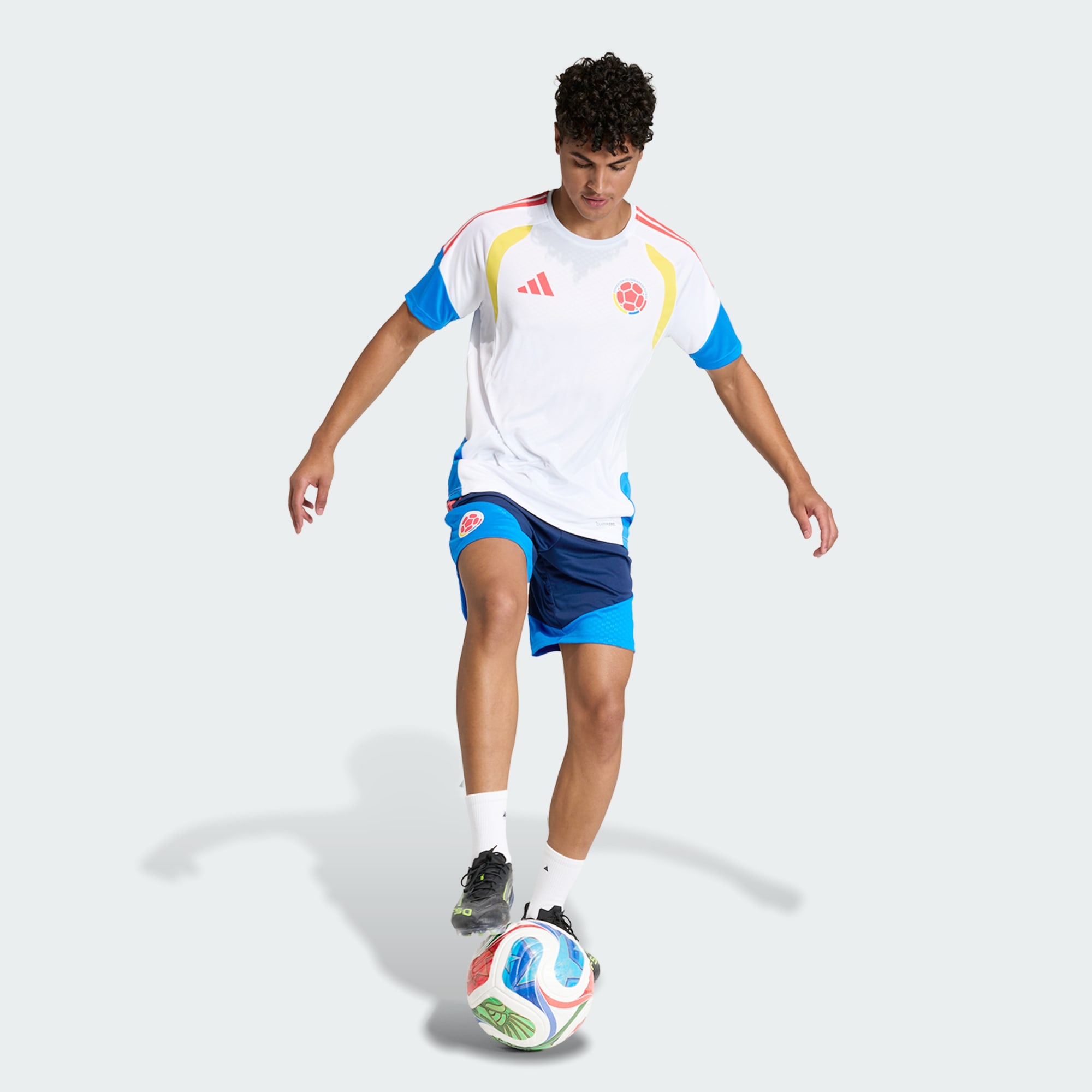 Shorts de fútbol de la Selección Colombia con tecnología Climacool para un rendimiento fresco y seco.