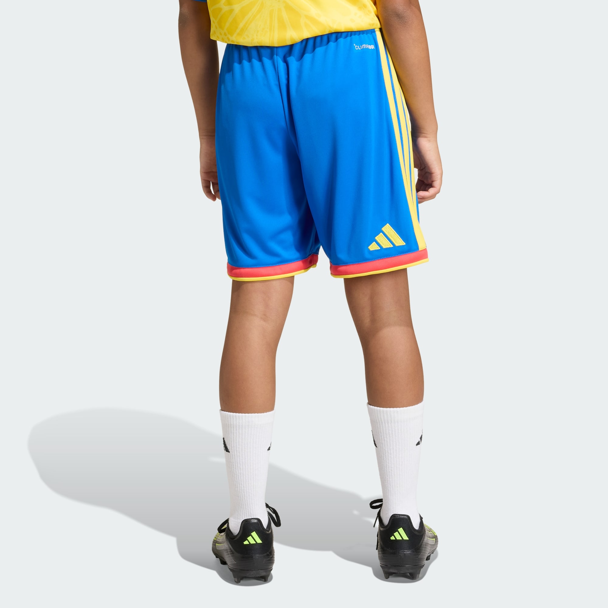 Adéntrate en el mundo del realismo mágico con los Shorts Local Selección Colombia 26. Inspirados en la vibrante cultura de Colombia, estos Shorts forman parte del icónico conjunto de la Selección Colombia. La tecnología Climacool integrada en el tejido absorbe y dispersa el sudor para ofrecer un desempeño fresco, seco y sin distracciones, permitiendo que los niños se sientan frescos y cómodos, tanto si juegan en el campo como si animan desde las gradas. Su confección de tejido entrelazado, duradero y cómodo, es ideal para niños activos. La cintura totalmente elástica con cierre de cordón ofrece un ajuste seguro, lo que permite un movimiento sin restricciones en la cancha. Las atrevidas 3 Rayas y el logo de adidas bordado añaden un toque extra de legado icónico, mientras que el escudo del club cosido muestra el orgullo y la celebración por la Selección Colombia. Diseñados para los jóvenes entusiastas del fútbol, estos Shorts encarnan el espíritu de la Selección Colombia, y aportan un toque de fantasía a la cancha. Ya sea para jugar o para entrenar, estos Shorts están listos para la acción.