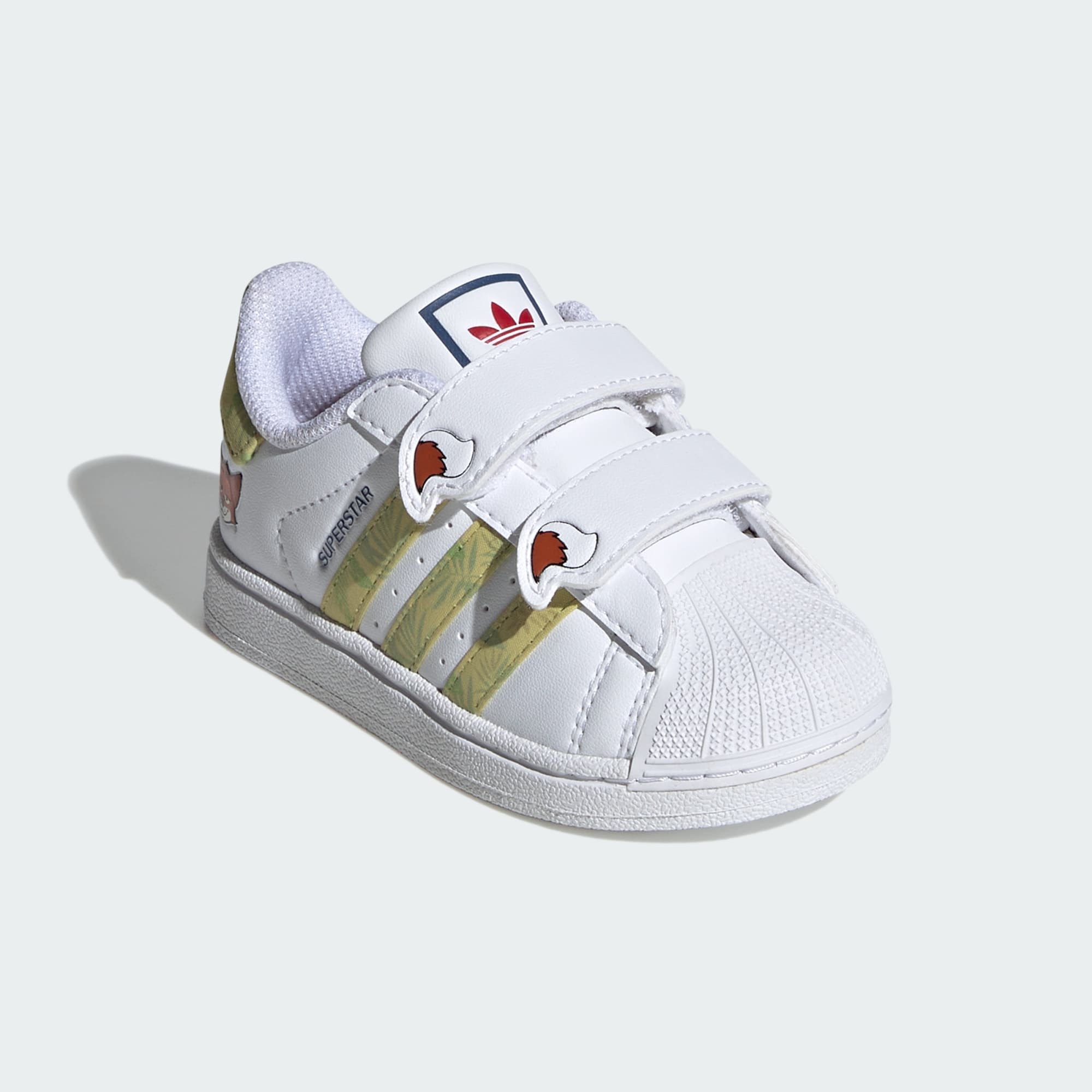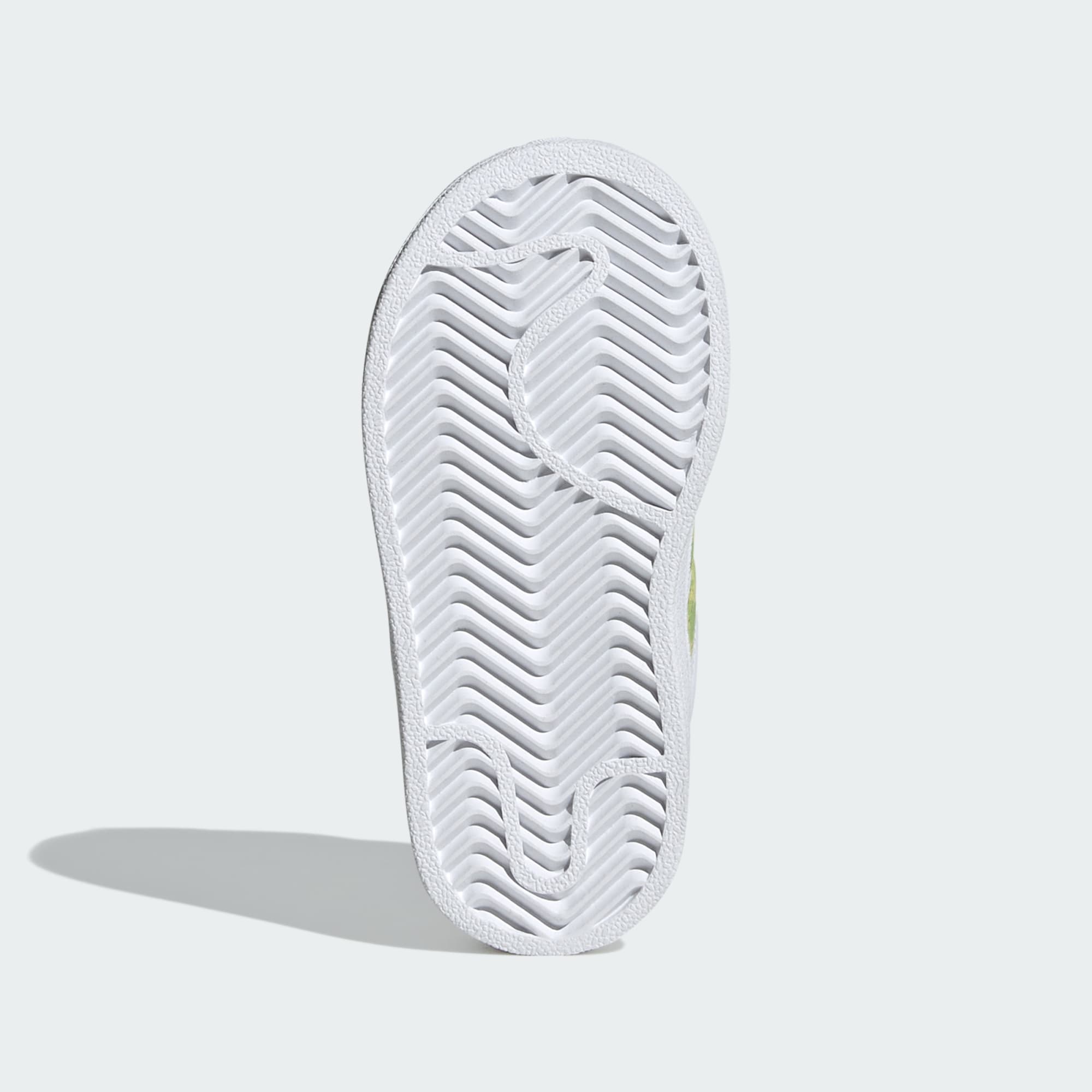 Estos tenis adidas Superstar para bebés llevan la magia de Disney a los pies de los más pequeños. El suave exterior de material sintético presenta a Mickey Mouse de Disney en un divertido diseño que encantará a los niños. A cada paso, las luces LED de la suela de caucho duradero se encienden y apagan, añadiendo una divertida sorpresa. Las tiras ajustables de cierre por contacto hacen que sean fáciles de poner y quitar, para que puedan pasar más tiempo explorando con estos iconos cotidianos.