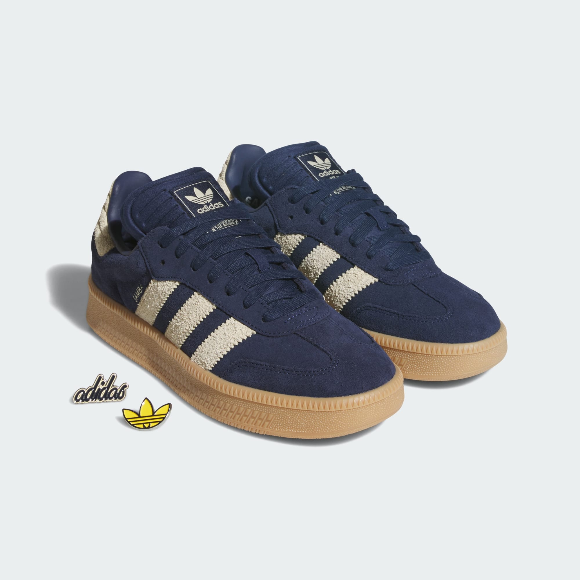 Lleva tu estilo a nuevos lugares con los Samba XLG de adidas. Mejorados con gamuza de primera calidad y una suela de caucho color caramelo con paredes laterales finamente texturizadas y un patrón de tracción variado, ofrecen una brillante mezcla de sofisticación deportiva y frescura informal. El icónico tirador de talón acolchado hace juego con el material de las 3 Rayas con borde dentado, mientras que la lengüeta acanalada y moldeada es tan cómoda como siempre sobre la parte superior del pie. La marca Samba en letras grandes en el lateral permite que todo el mundo sepa cómo pisas. Un básico urbano desde hace mucho tiempo, usa los XLG con unos track pants, o combínalos con jeans de moda o chinos para un look único.